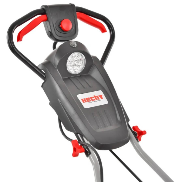 - Управління снігоочисником зручне: рукоятка забезпечена двома важелями запуску, що дають змогу працювати як правою, так і лівою рукою. Також передбачена кнопка безпеки, що запобігає випадковому запуску двигуна. Вбудований світлодіодний ліхтар на панелі ручки дає змогу ефективно прибирати сніг навіть у темний час доби. Ліхтар активується тільки під час роботи двигуна і автоматично вимикається через деякий час після його зупинки, щоб уникнути розряду акумулятора.