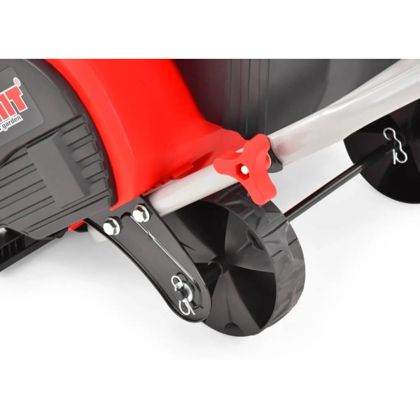 - Модель є несамохідною, тому її пересування здійснюється вручну за допомогою двох пластикових коліс діаметром 140 мм, що забезпечують хорошу маневреність навіть на засніжених поверхнях.