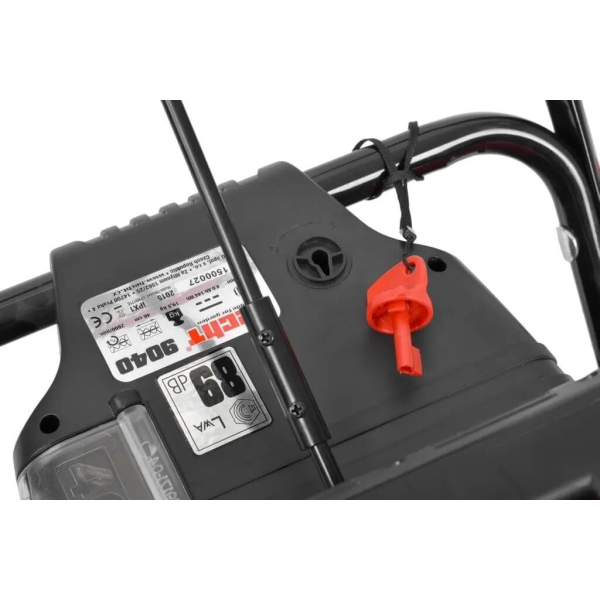 - Завдяки акумуляторному приводу, снігоочисник простий в експлуатації: вам не потрібно запускати двигун внутрішнього згоряння або підключати силові кабелі. Просто вставте заряджений акумулятор, і пристрій готовий до роботи. Для підвищення безпеки модель оснащена ключем блокування, який запобігає випадковому запуску пристрою. Без цього ключа запустити двигун неможливо, що особливо важливо в будинках із дітьми.