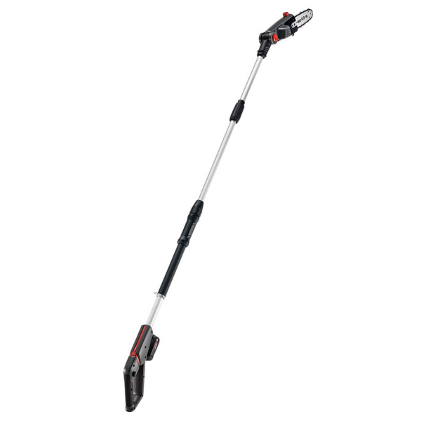 Просунутий 18В висоторіз зі штангою довжиною 237 см і 20 см шиною Oregon. Положення ріжучої головки регулюється на 125 градусів