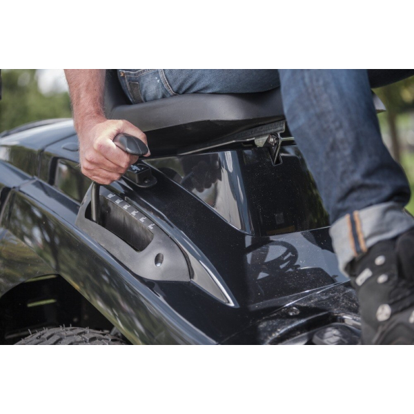 - Оснащений потужним 4-х тактним бензиновим двигуном B&S Powerbuilt 4175 об'ємом 500 см3 потужністю 9.5 кВт. Розташований двигун під сидінням.