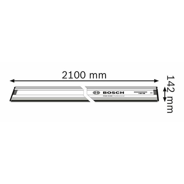2100 мм у довжину та 142 мм по ширині напрямна рейка Bosch FSN 2100 з антиковзними підкладками та захистом від відколів для точного ведення циркулярної пили та отримання акуратного різу. Стикувальний елемент VEL дає можливість швидко та рівно скріпити між собою кілька шин.