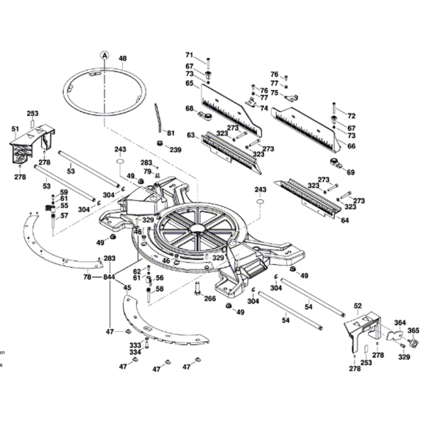 - Елементи налаштування необхідного кута скосу (52° L / 60° R) і нахилу (47° L / 47° R) розташовані на передній частині торцювання.