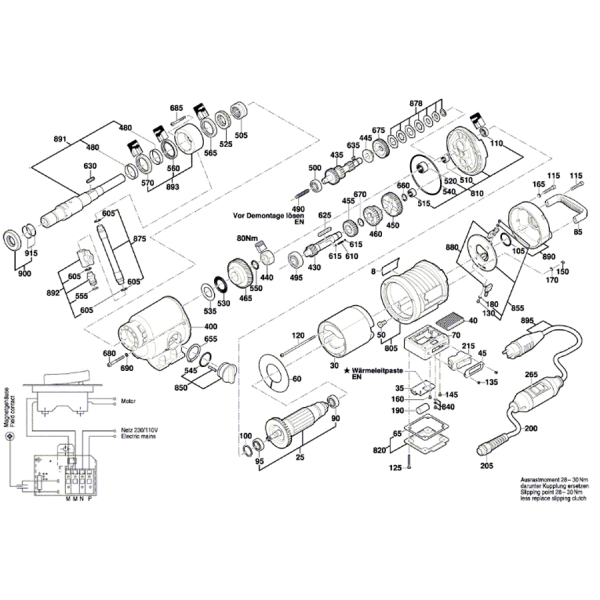 - Запобіжна муфта в разі заїдання або смикання сверлильної коронки роз'єднує привід сверлильного шпинделя.