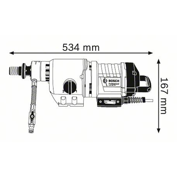 - Бур Bosch GDB 350 WE Professional (код для замовлення 0601189900) призначений для мокрого свердління охолоджуваними алмазними свердлильними коронками мінеральних матеріалів, таких як бетон, залізобетон, цегляна кладка.