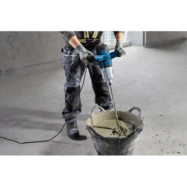 - Будівельний електричний міксер професійного класу Bosch Professional GRW 140 створений для замішування різних будівельних сумішей, як-от шпаклівка, бетонні суміші, фарба та клей.