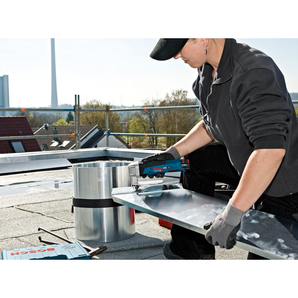 - Швидкісне різання без особливих зусиль металевих листів товщиною до 1,3 мм прямо та криволинейно забезпечать акумуляторні ножиці Bosch GSC 12V-13 Professional.