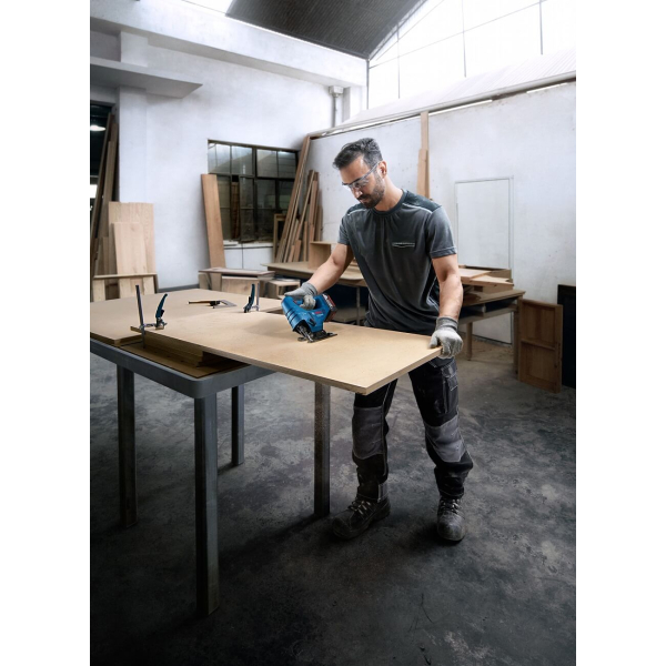 - Система Bosch SDS без використання інструментів із ходом полотна до 20 мм спрощує заміну пиляльних полотен, а захист від відколів у комплекті гарантує ідеальну кромку.