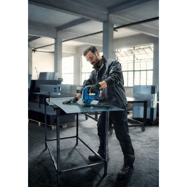 - Швидкість різу регулюється від 0 до 3300 ходів за хвилину, а 4-ступінчаста маятникова дія дає змогу обирати між швидким грубим і акуратним чистовим різом.