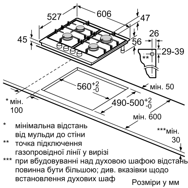- Розмір ніші для вбудовування 45x560-562x490-502 мм.