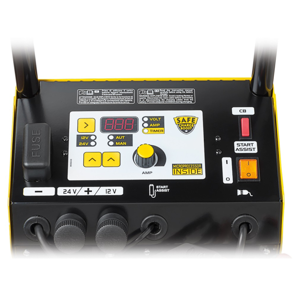 Потужний 230В пускозарядний пристрій для 12/24В АКБ ємністю до 800 А/год. Зарядний струм 60А, пусковий — 400/700А