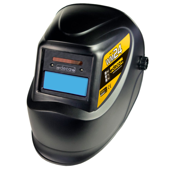 Маска зварювальна Deca WM 24 LCD використовується для процесів зварювання MMA, MIG, TIG захищаючи обличчя від травм та зір оператора. Оглядовове вікно "Хамелеон" розміром 90х34 мм, з захистом від УФ/ІК променів DIN 16. Ступінь затемнення у темному режимі – DIN 11, у світлому – DIN 3. Час перемикання від світлого до темного – 5/10000 с, від темного до світлого – 0.2 с. Два датчика дуги. Живлення – сонячна батарея та акумулятор. Вага – 0.46 кг.