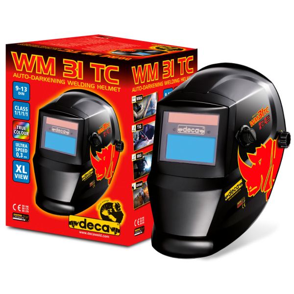 - Зварювальна маска Deca WM 31 TC LCD – це обов'язковий аксесуар кожного зварювальника. Її ключовою особливістю є світлофільтр, який автоматично затемнюється у разі зварювальної дуги. Це забезпечує надійний захист від шкідливого ультрафіолетового та інфрачервоного випромінювання DIN 16, що виділяється під час зварювання.