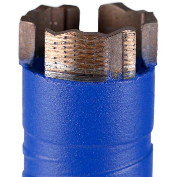 - Сегментна коронка працює в сухому режимі під час свердління алмазними дрилями з мікроударом і свердлильними установками, використання води разом із нею небажане.