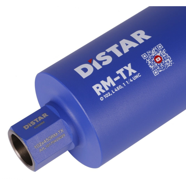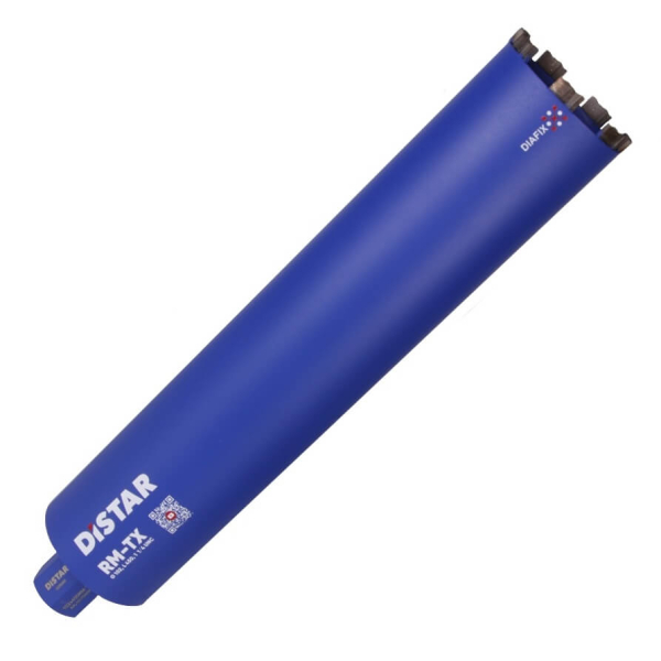 - Коронка Distar RM-TX — це професійне приладдя для сухого алмазного свердління з трубчастою конструкцією. Його застосовують у поєднанні з алмазними буровими установками, на ручних свердлильних машинах з мікроударом без необхідності використання охолодження для створення отворів у різних міцних матеріалах, включно з армованим і неармованим бетоном, каменем із важким армуванням, гідротехнічним бетоном і цеглою.