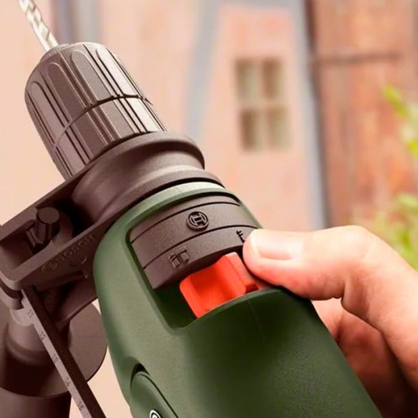 Ударний дриль Bosch EasyImpact 600 призначається для свердління різних матеріалів з ударом і без. Виробляє перфорації в металі до 10 мм, в бетоні до 12ммі, в деревині до 24мм. Підходить для роботи з керамікою, алюмінієм, пластиком і атеріалами. Оснащена потужним електродвигуном Потужність 600 Вт. Розвиває швидкість 3 тис об / хв. Ударний механізм видає 45 тис уд / хв. Крутний момент 1,4 НМ. Встановлено патрон для фіксації оснастки з хвостовиком від 2 до 13 мм. Функція Electronic Speed Control.