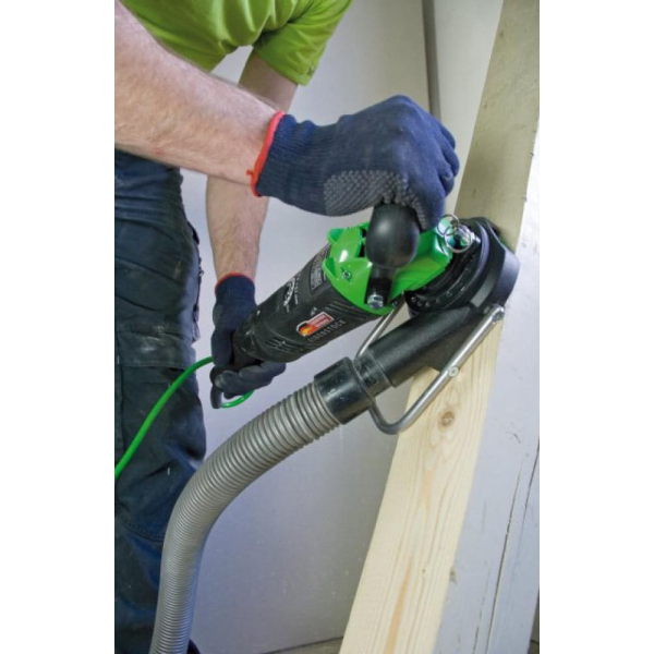 - На кожусі розміщено патрубок для під'єднання будівельного пилососа.