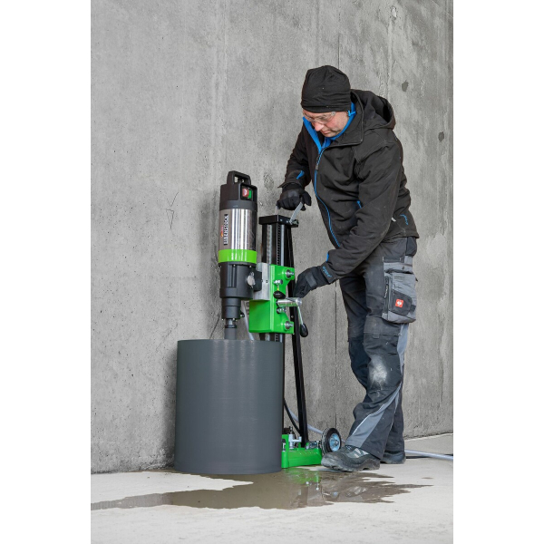 - Оснащена патроном із різьбленням шпинделя 1 1/4" UNC. Максимально можливий діаметр свердлильних алмазних коронок від 71 до 452 мм.