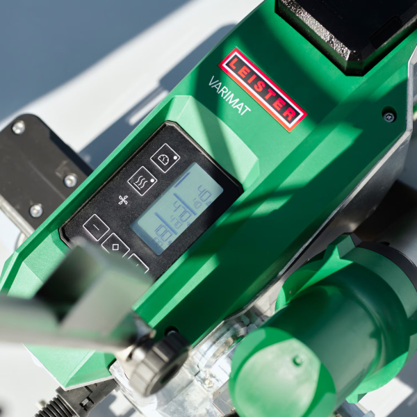 Екструзійний зварювальний апарат Leister Varimat 300 — це потужний та надійний зварювальний автомат, призначений для професійного зварювання полімерних та бітумних гідроізоляційних мембран на плоских покрівлях, а також для зварювання технічних тканин та банерів. Оснащений високим контактним тиском та інноваційним поворотним механізмом для точного позиціонування сопла. Розвиває швидкість зварювання до 10 м/хв при температурі до 620 °C. Ширина стандартного зварювального сопла становить 40 мм. Обладнаний великим дисплеєм для інтуїтивного керування та знімними вантажами (14 кг + 3 кг) для досягнення необхідного тиску. Вага апарата — 37.5 кг. Вироблено у Швейцарії.