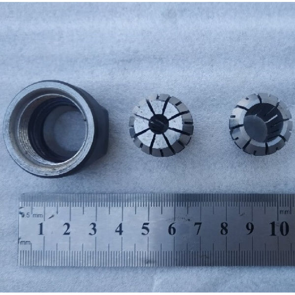 - Використовуваний цанговий патрон ER25 зі змінними цангами 8 мм і 12 мм розширює можливості верстата і дає змогу застосовувати широкий асортимент різального інструменту.