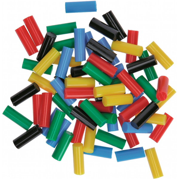 - У наборі по 14 штук стрижнів різного кольору: червоні, жовті, сині, зелені, чорні.