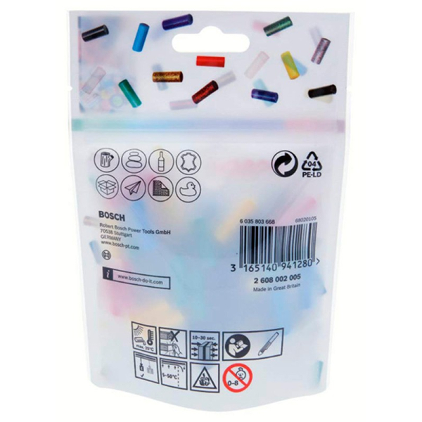 Клейові стрижні Gluey Bosch кольорові, 7х20 мм, 70 шт (2608002005)