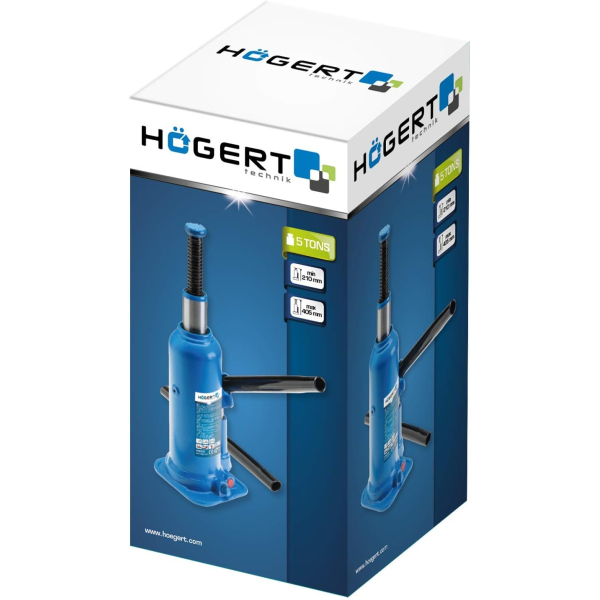 - Гідравлічний пляшковий домкрат Hogert - це надійний інструмент для підняття автомобілів вагою до 8 т в автомайстернях, гаражах та інших місцях.