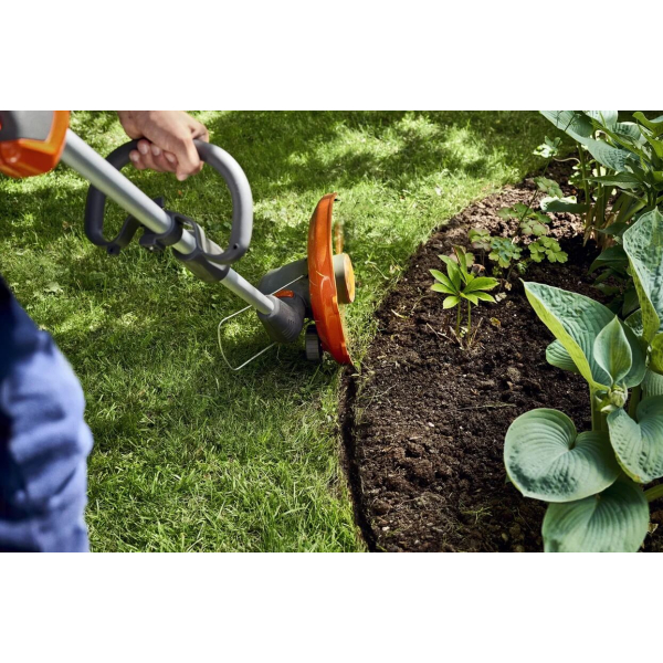- Вбудоване направляюче колесо забезпечує бічне обрізання країв, даючи вам змогу дістатися до важкодоступних місць за допомогою одного пристрою.