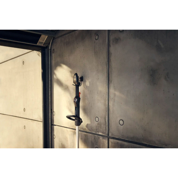 - Тример розроблений з урахуванням обмеженого простору, легко поміщається в невеликих приміщеннях, зберігання спрощується завдяки спеціально виготовленим гачком для зберігання, який можна закріпити безпосередньо на стіні.