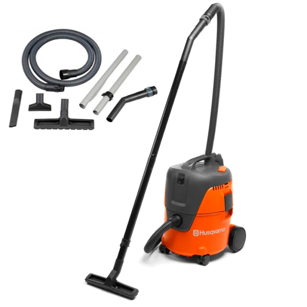 Пилосос Husqvarna | Всмоктувальний шланг 2.2 м | Подовжувальні алюмінієві трубки | Насадка для підлоги | Насадка для м'яких меблів | Щілинна насадка | Фільтр для вологого прибирання |Флісовий фільтр-мішок