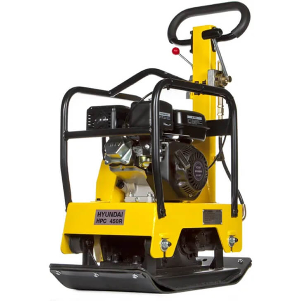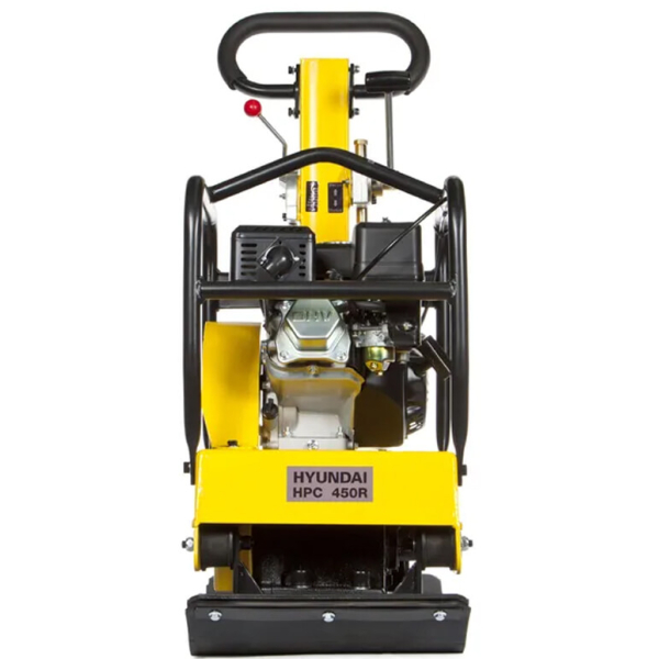 Вібраційна плита Hyundai HPC 450R оснащена реверсивним рухом. Має велику робочу ділянку (66х38 см), яка дозволяє працювати на відкритих ділянках. Потужність машини — 4.78 кВт (6.5 к.с). Запускається механічний способом. Робоча глибина — 50 см. Відцентрова сила — 22 кН. Рухається зі швидкістю 20 м/хв. Резервуари вміщають 3.6 л бензину, 0.6 л мастила. Вага конструкції — 130 кг. Доставляється із килимком, резервуаром для води та парою коліс.