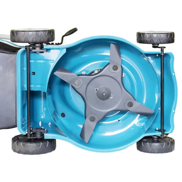 - Діаметр передніх і задніх коліс різниться — 15.2 та 17.7 см відповідно. Вони легше маневрують, не мнуть траву.