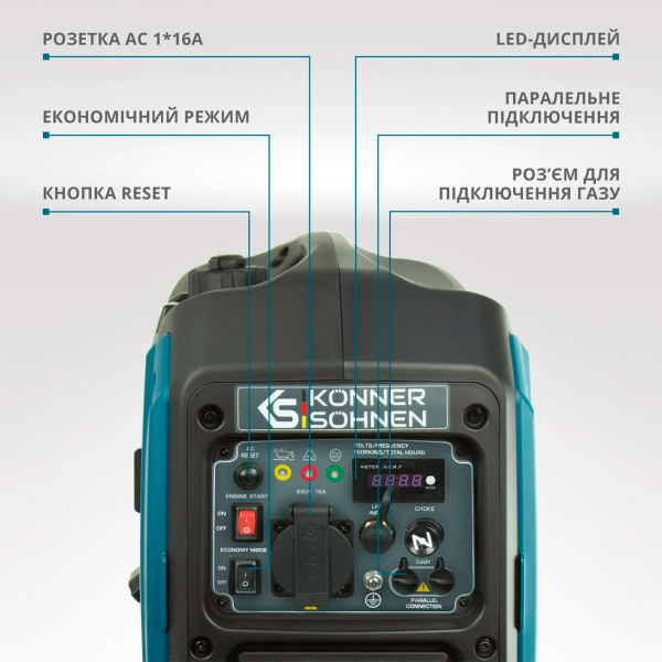 Технічні особливості генератора інверторного Konner&Sohnen KS 2000iG S: