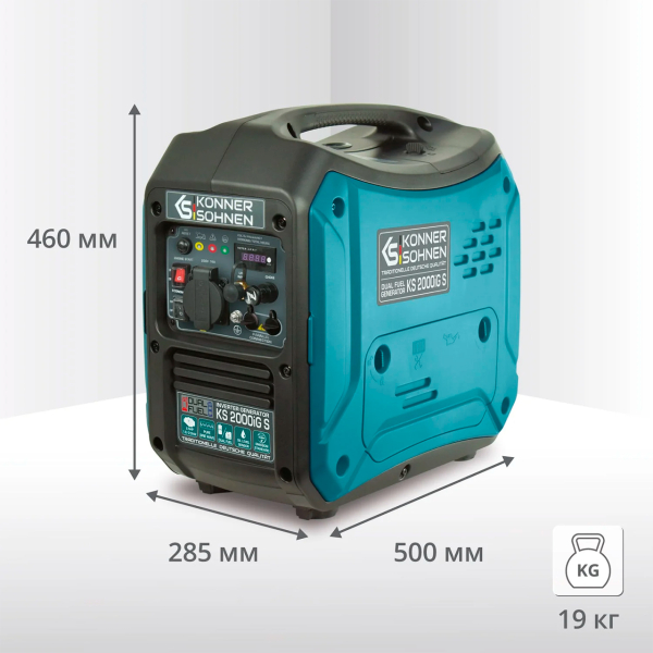 Генератор інверторний Konner&Sohnen KS 2000iG S — компактний, переносний пристрій, потужність якого вимірюється 1.8 кВт (номінальна) чи 2 кВт (максимальна). Об’єм двигуна — 79.7 см3. Сила струму сягає