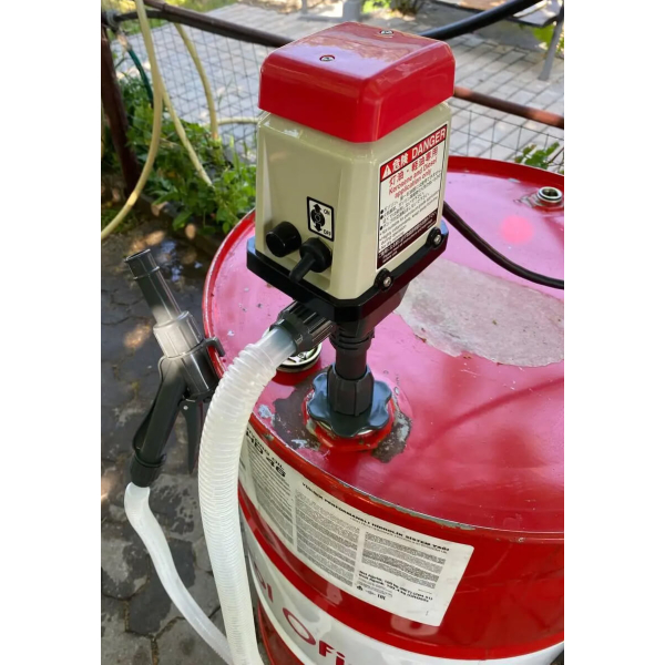 Електричний насос Koshin FP-2512-AAA ефективно справляється з перекачуванням пального (дизеля, гасу). Зі 200-літровою бочкою справляється протягом 10 хв. Працює пристрій від 12-вольтної напруги. Оснащений насос зливним шлангом довжиною 1.5 м із діаметром 25 мм, зручною у використанні пістолетною насадкою. Всмоктувальна трубка регулюється по висоті — 0.2-0.9 м. Важить пристрій 2 кг.