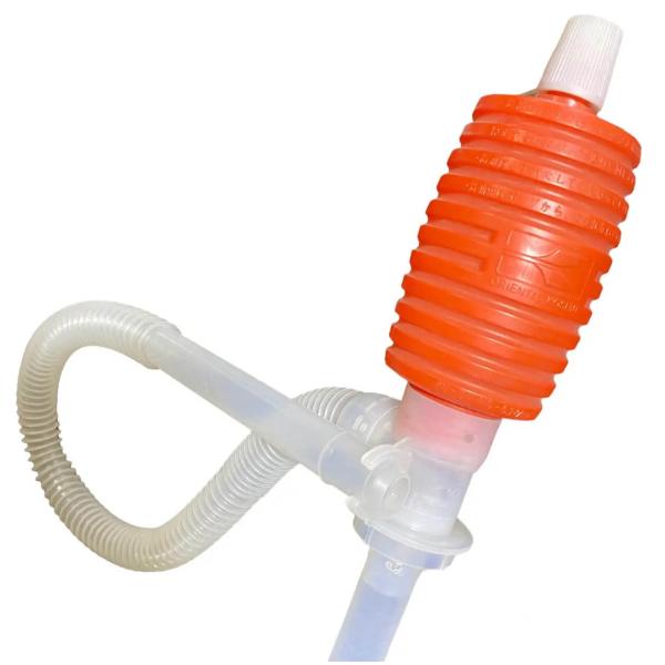 - Пластиковий аксесуар перекачує з каністр, бочок, бутлів та інший ємностей невеликі об’єми рідин зі швидкістю до 6.7 л/хв.
