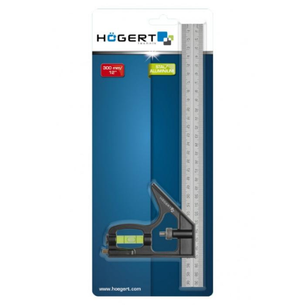 - Комбінований косинець Hoegert 300 мм - це надійний інструмент для перевірки горизонтальної та вертикальної площини, ефективно використовується при виконанні загальнобудівельних, ремонтних, сантехнічних та столярних робіт.