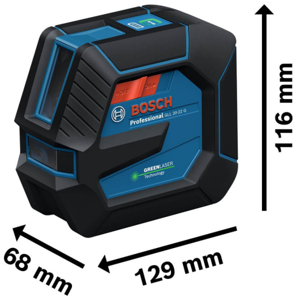 - Лазерний лінійний нівелір Bosch GLL 20-22 G Professional розроблений як надійний і зручний інструмент для точного вирівнювання та розмітки при виконанні широкого кола будівельних і монтажних робіт.