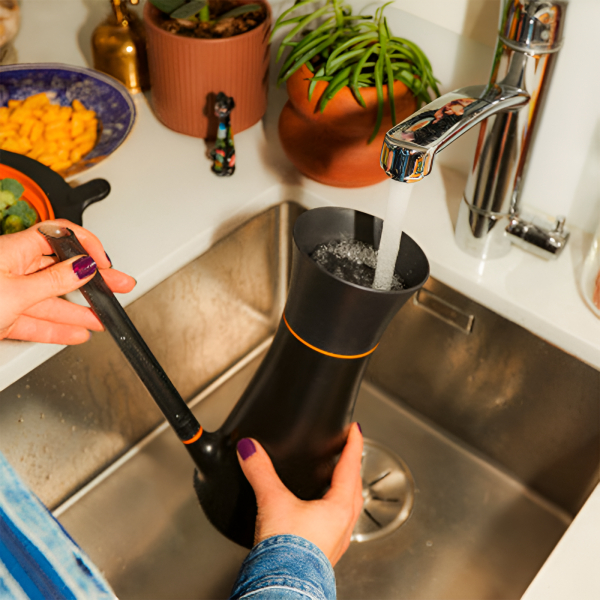 - Сучасний чорний дизайн робить лійку естетичним елементом інтер'єру.