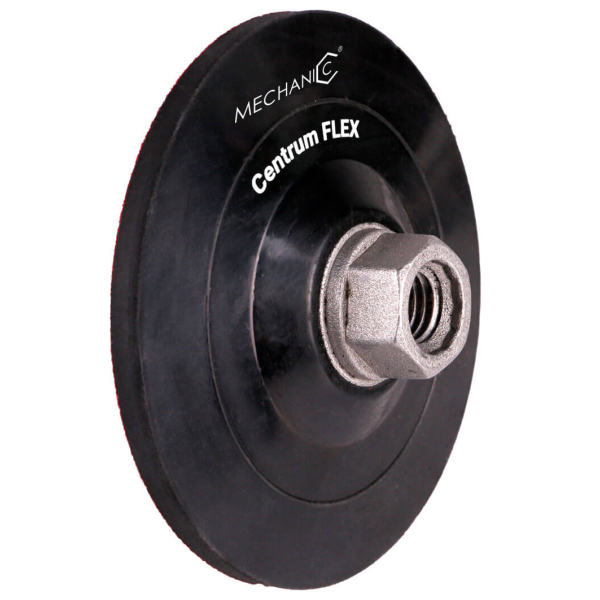 Опорна тарілка Mechanic CentrumFlex діаметром 100 мм. Кріпиться за допомогою з’єднання з метричною різьбою М14. Особливість тримача полірувальних кругів — наявність центрувального бурта діаметром 14.7 мм, із висотою 2.5 мм для точності встановлення шліфлистів по центру. Фіксує робочий круг до основи липучкою.