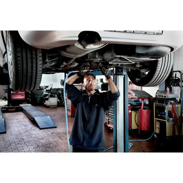 - Працює від стисненого повітря (390 л/хв), яке виходить від тиском 6.2 бар.