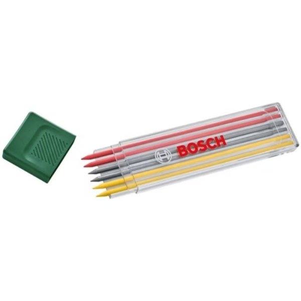 Набір різнокольорових грифелів Bosch 6 шт використовується спільно з олівцем для маркування. Стрижні мають довжину 118 мм та діаметр 2.8 мм, відмінно підходять для роботи з каменем, бетоном, деревом та папером.