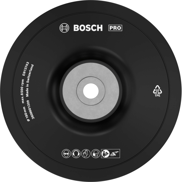 - Опорна тарілка Bosch PRO Backing Pad забезпечитьь надійну фіксацію шліфувальних листів на великих кутових шліфувальних машинах. Використовується при виконанні фінішної обробки поверхонь.