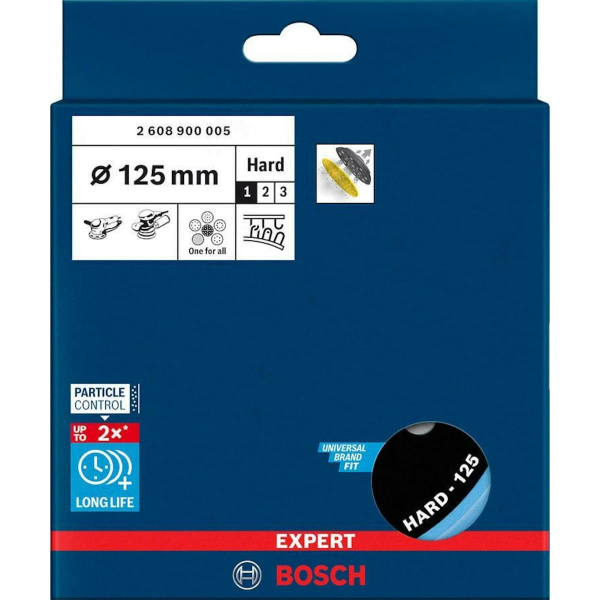 - Опорна тарілка Bosch Expert Multihole — це високоякісний аксесуар, розроблений для шліфування різних поверхонь. Ця універсальна тарілка ідеально підходить для роботи з ексцентриковими шліфувальними машинами. Діаметр становить 125 мм. Перевагою цієї тарілки є жорстка текстура і наявність отворів, що робить її ідеальним вибором для різноманітних завдань.