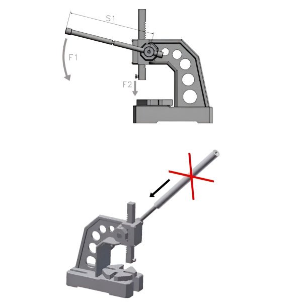 - Кріплення рейкового преса на верстак забезпечує стійкість і надійність під час роботи.