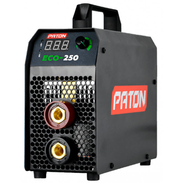 Випрямляч інверторний Патон ECO-250 призначений для ручного дугового зварювання (РДС «ММА») на постійному струмі. Головні переваги апарату — екологічність, економічність, мала вага (4,3 кг), компактні розміри, доступна ціна. З номінальним зварювальним струмом 250 А випрямляч підходить для використання в домашніх майстернях, у приватному будівництві. Адаптований до побутової мережі. Функції «Гарячий старт», «Форсаж дуги», «Антиналипання». Напруга підпалу дуги 110 В. КПД 90%. Тривалість навантаження 40%. Напруга холостого ходу при РДС 80 В. Для роботи підходять штучні електроди 1,6-5 мм включно тугоплавкі. Поставляється апарат в гофрокоробі з 3-метровим кабелем з електродотримачем, 3-метровим кабелем з клемою «маса», ременем для перенесення.