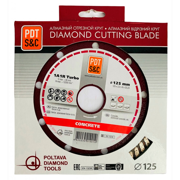 Опис алмазного круга по залізобетону PDT Concrete 1A1R Turbo 125х2,2х8х22,2 мм: