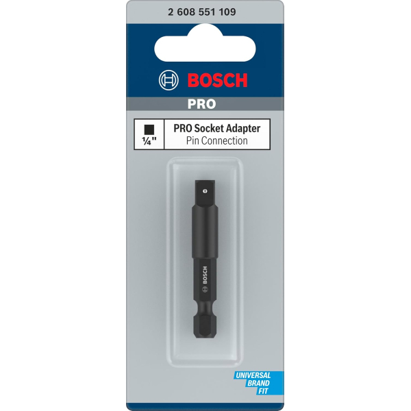 - Перехідник Bosch призначений для з'єднання різних насадок і біток з шестигранним хвостовиком 1/4 дюйма з іншими інструментами, такими як торцеві ключі або шуруповерти.