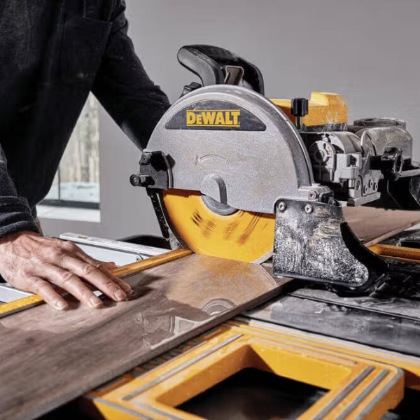 DeWALT D36000 – професійне обладнання для різання плитки різних типів. Апарат 1600 Вт розвиває швидкість до 4200 об/хв. Для роботи використовуються диски 250 мм з отвором для посадки 25,4 мм, які дають змогу розрізати матеріал на глибину до 80 мм. Поперечний різ під кутом 90 градусів досягає 940 мм. Важить верстат 45 кг.