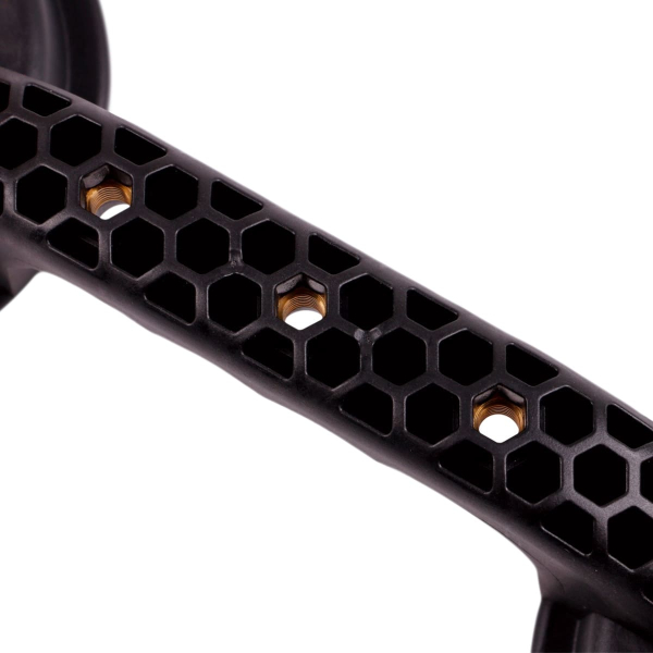 - Модель має вбудовані бронзові втулки, які дозволяють розширити її функціональність – зокрема, для вирівнювання плитки та системи її стягування.